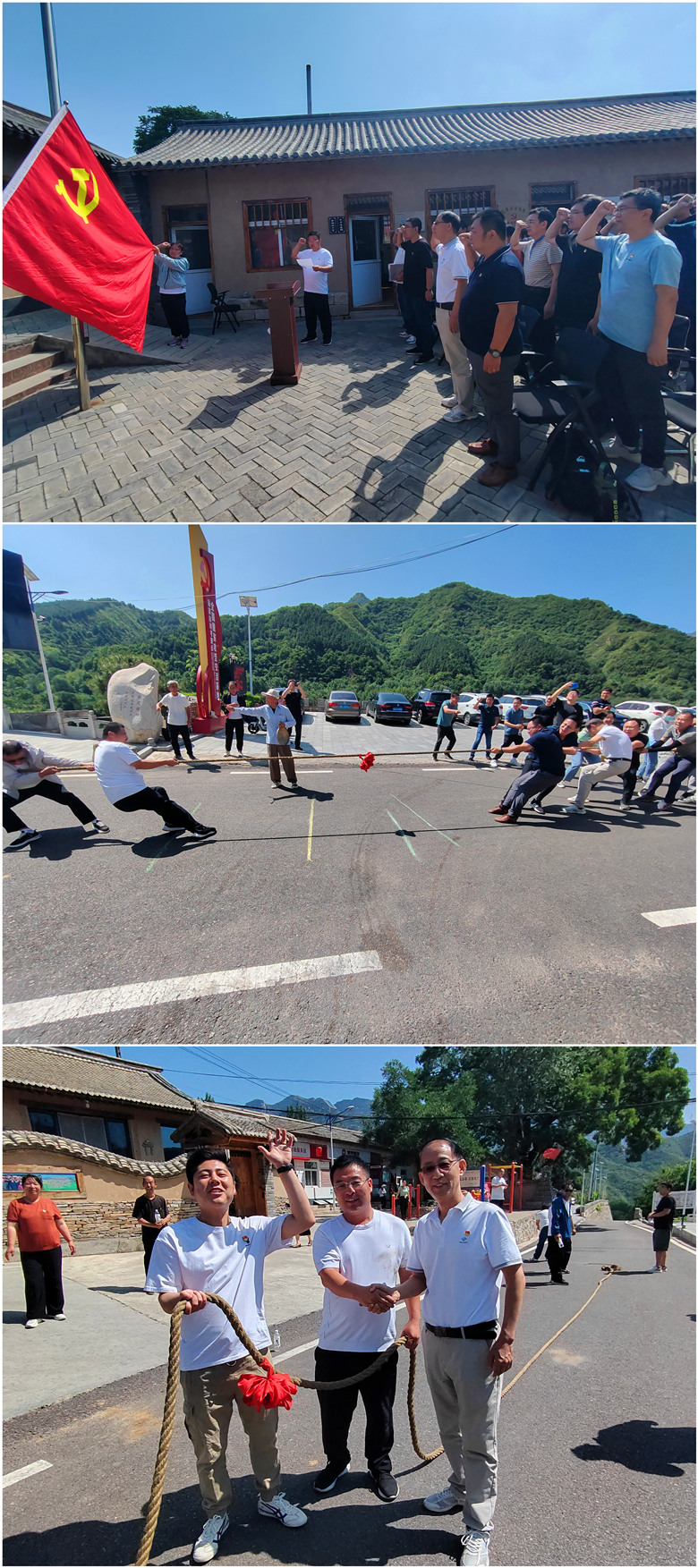 結(jié)構(gòu)所黨支部與顧家臺黨支部開展聯(lián)合黨日活動。顧家臺村支部書記顧錦成同志帶領全體黨員在黨旗下莊嚴宣誓,重溫入黨誓詞。隨后,兩個支部的黨員開展拔河聯(lián)誼活動。