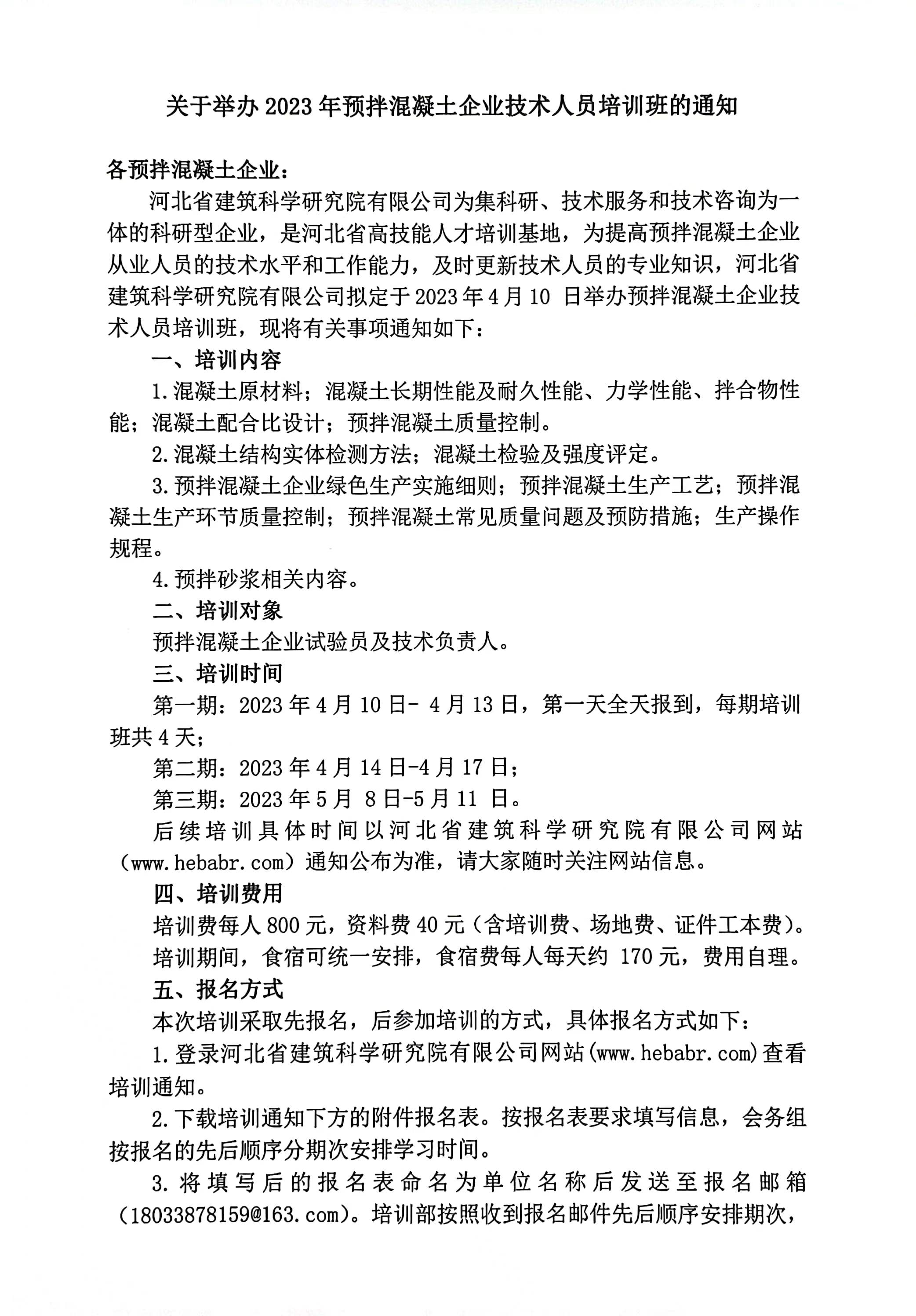 2023年預拌混凝土企業(yè)技術(shù)人員培訓班報名表