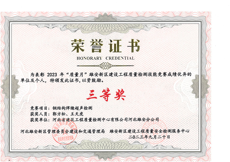 雄安分公司榮獲雄安新區(qū)建設(shè)工程質(zhì)量檢測(cè)技能競(jìng)賽多項(xiàng)獎(jiǎng)項(xiàng)